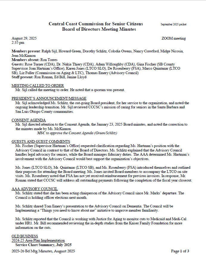 Please join Central Coast Commission for Senior Citizens for our Advisory Council meeting on 10/17/2025 at 9:30am.